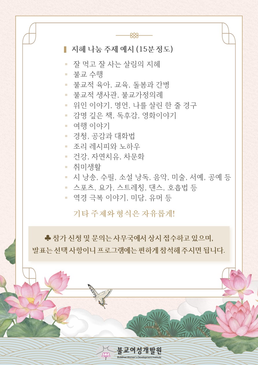 3¿ù 20ÀÏ(±Ý) ºÒ±³¿©¼º¿¬±¸¼ÒÀÇ ¡°ÁöÇý¸¦ ³ª´©´Â ´ç½ÅÀÌ ¾Æ¸§´Ù¿ö, ÀÀ¿øÇѵ¥ÀÌ!¡± 4Â÷ Çà»ç°¡ ¿¸³´Ï´Ù.