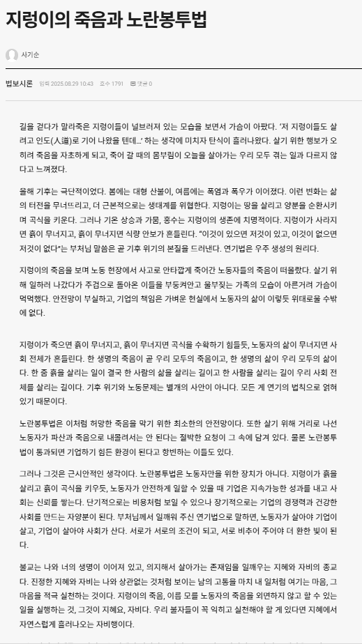8¿ù 28ÀÏ ¹ýº¸½Å¹®¿¡ Áö··ÀÌÀÇ Á×À½°ú ³ë¶õºÀÅõ¹ý¿¡ ´ëÇØ ±â°íÇÏ¿´´Ù.