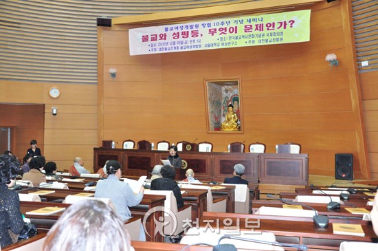 [õÁöÀϺ¸=À̱æ»ó ±âÀÚ] ¡°ºÒ±³¿¡¼ ¿©¼ºÀÇ ¹®Á¦¸¦ ´Ù·ê ¶§´Â ºÒ±³°æÀüÀ» ÅëÇØ ÇØ´äÀ» ¾ò¾î¾ß ÇÑ´Ù.¡± º»°¢½º´Ô(Á߾ӽ°¡´ë ±³¼ö)Àº ºÒ±³¿©¼º°³¹ß¿øÀÌ Ã¢¸³ 10ÁÖ³âÀ» ¸Â¾Æ ¡®ºÒ±³¿Í ¼ºÆòµî, ¹«¾ùÀÌ ¹®Á¦Àΰ¡?¡¯¶ó´Â ÁÖÁ¦ÀÇ ¼¼¹Ì³ª¿¡¼ À̰°ÀÌ ÁÖÀåÇß´Ù.