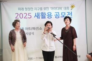 (»ç)ÁöÇý·Î¿î¿©¼º(ÀÌ»çÀå Á¤´ë·Ã)Àº ¿ÃÇØ 3ȸ¸¦ ¸ÂÀÌÇÏ´Â 2025 ¡®»õȰ¿ë(¾÷»çÀÌŬ¸µ)¡¯ ¾ÆÀ̵ð¾î °ø¸ðÀü[ÀÚ¿¬°ú Àΰ£ÀÇ ÇູÇÑ °øÁ¸]ÀÇ »õȰ¿ë ¾ÆÆ®¼î¸¦ 7¿ù 12ÀÏ(Åä) ºÒ±³¿©¼º°³¹ß¿ø ÀÚºñ½Ç¿¡¼­ °³ÃÖÇÏ¿´´Ù.