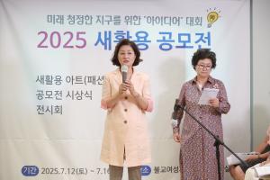(»ç)ÁöÇý·Î¿î¿©¼º(ÀÌ»çÀå Á¤´ë·Ã)Àº ¿ÃÇØ 3ȸ¸¦ ¸ÂÀÌÇÏ´Â 2025 ¡®»õȰ¿ë(¾÷»çÀÌŬ¸µ)¡¯ ¾ÆÀ̵ð¾î °ø¸ðÀü[ÀÚ¿¬°ú Àΰ£ÀÇ ÇູÇÑ °øÁ¸]ÀÇ »õȰ¿ë ¾ÆÆ®¼î¸¦ 7¿ù 12ÀÏ(Åä) ºÒ±³¿©¼º°³¹ß¿ø ÀÚºñ½Ç¿¡¼ °³ÃÖÇÏ¿´´Ù.