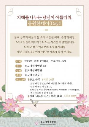 10¿ù 17ÀÏ(±Ý)Àº ºÒ±³¿©¼º¿¬±¸¼ÒÀÇ ¡°ÁöÇý¸¦ ³ª´©´Â ´ç½ÅÀÌ ¾Æ¸§´Ù¿ö, ÀÀ¿øÇѵ¥ÀÌ!¡± 3Â÷ Çà»ç°¡ ¿¸± ¿¹Á¤ÀÔ´Ï´Ù.