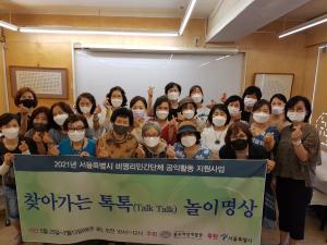2021³â ¼¿ï½Ã ºñ¿µ¸®¹Î°£´Üü Áö¿ø»ç¾÷ÀÎ ¡®Ã£¾Æ°¡´Â ÅåÅå(Talk Talk)³îÀ̸í»ó¡¯ÀÌ 7¿ù13ÀÏ ¼ö·á½ÄÀ» °¡Á³´Ù. À̹ø ±³À°Àº 5¿ù 25ÀϺÎÅÍ 7¿ù13ÀϱîÁö ÃÑ8°ÀÌ ÁøÇàµÆÀ¸¸ç 25¸íÀÇ ÁßÀå³â¿©¼ºÀÌ Âü¿©Çß´Ù.